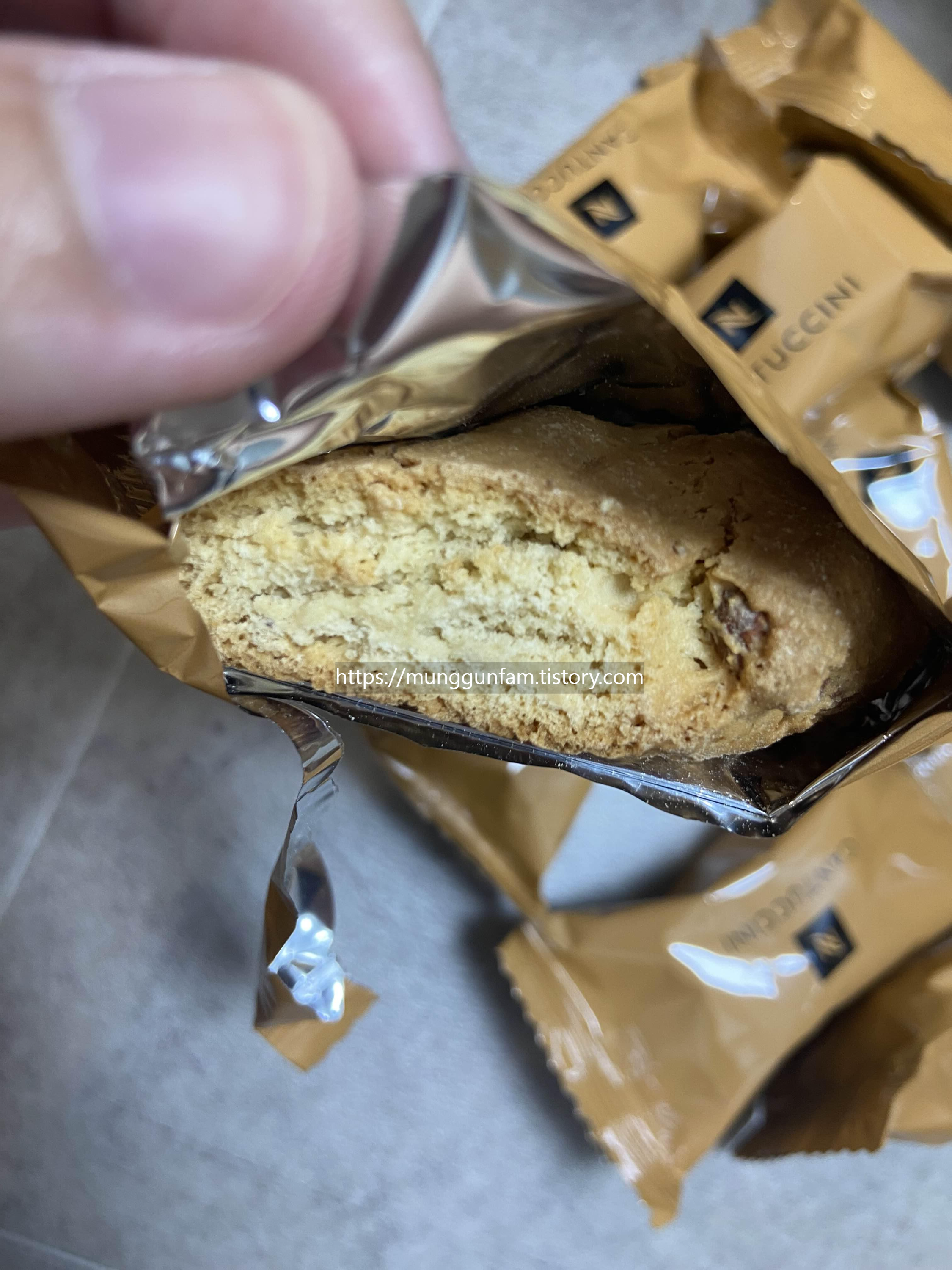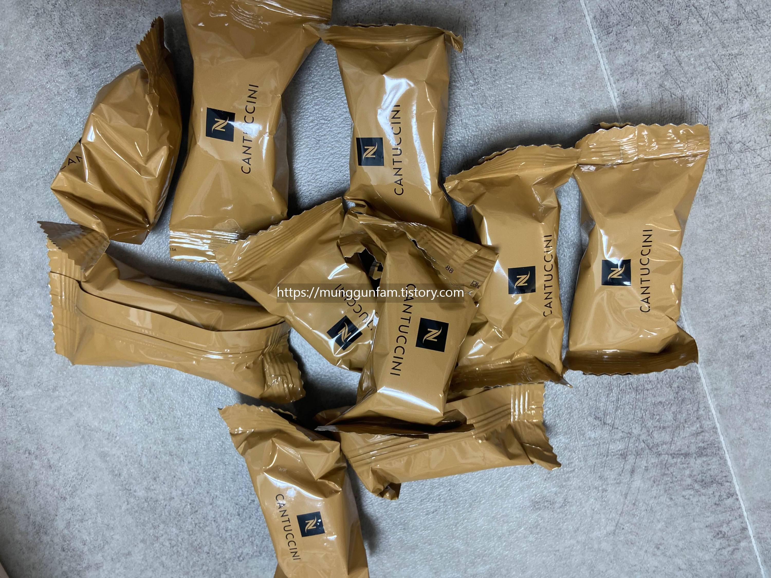 네스프레소 쿠키도 한 박스 주셨어요. 이름이 칸투치니인가봅니다. 정가는 1만원이에요. 포스팅에선 종종 봤는데 저도 이번 기회에 한 번 먹어보네요.