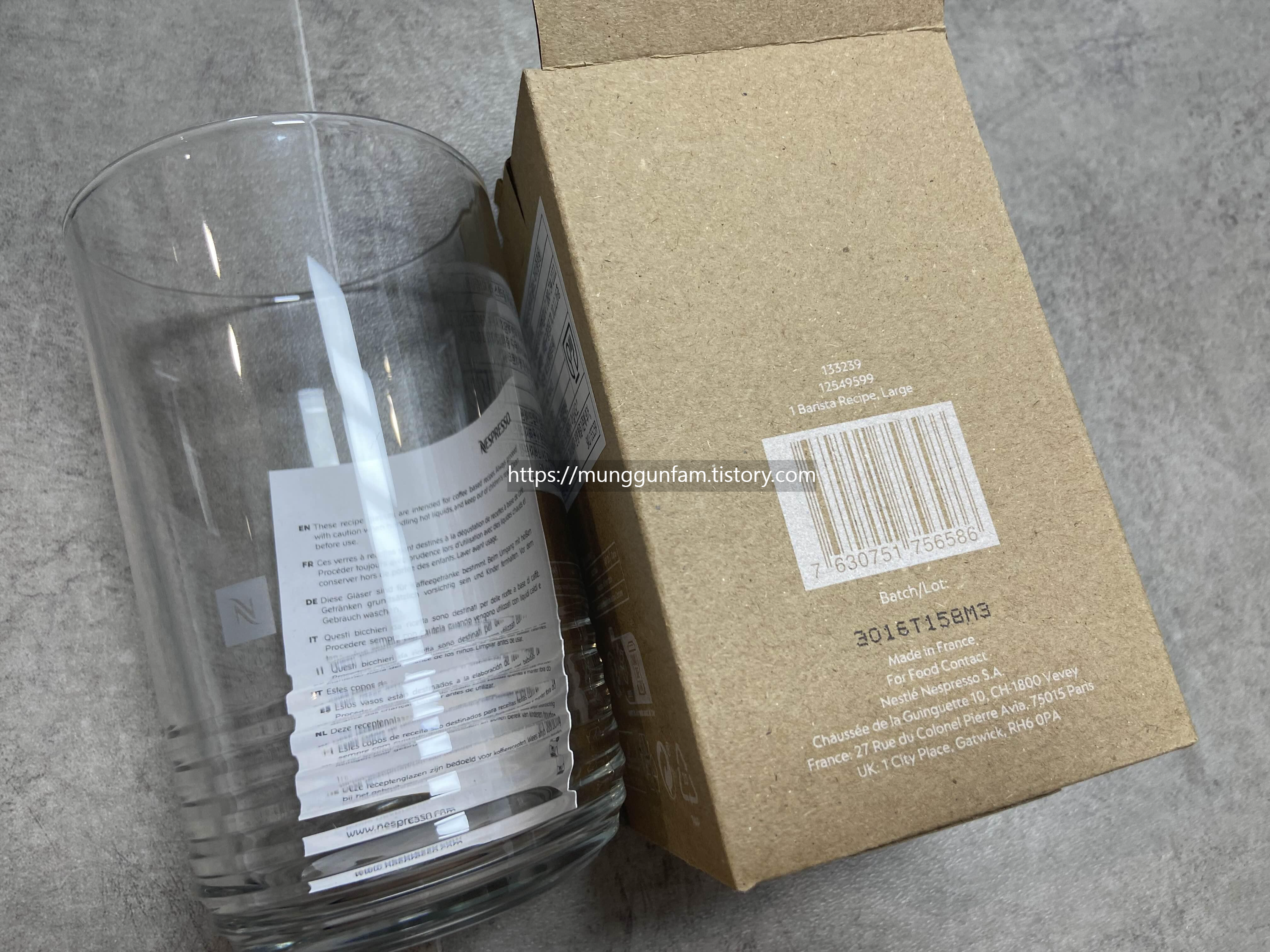 네스프레소 컵도 선물받았어요. 정가는 15,000원 정도인 듯 합니다. 이미 집에 작은 사이즈의 컵이 있긴 한데, 이번에 받은 컵은 라지 사이즈로 크기가 훨씬 커서 좋네요. 아이스 음료 만들어마시기 딱 좋을 것 같아요!